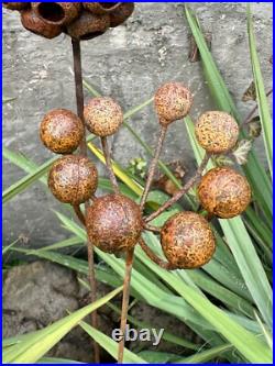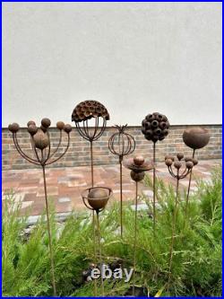 Set of 8 Rustic Metal Flower Sculptures Handmade Garden Stakes, Yard Art